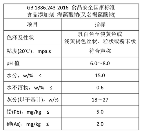 GB 1886.243-2016 食品安全國(guó)家標(biāo)準(zhǔn) 食品添加劑 海藻酸鈉(又名褐藻酸鈉),也可根據(jù)客戶(hù)需要,生產(chǎn)符合E401、FCC標(biāo)準(zhǔn)要求的產(chǎn)品。