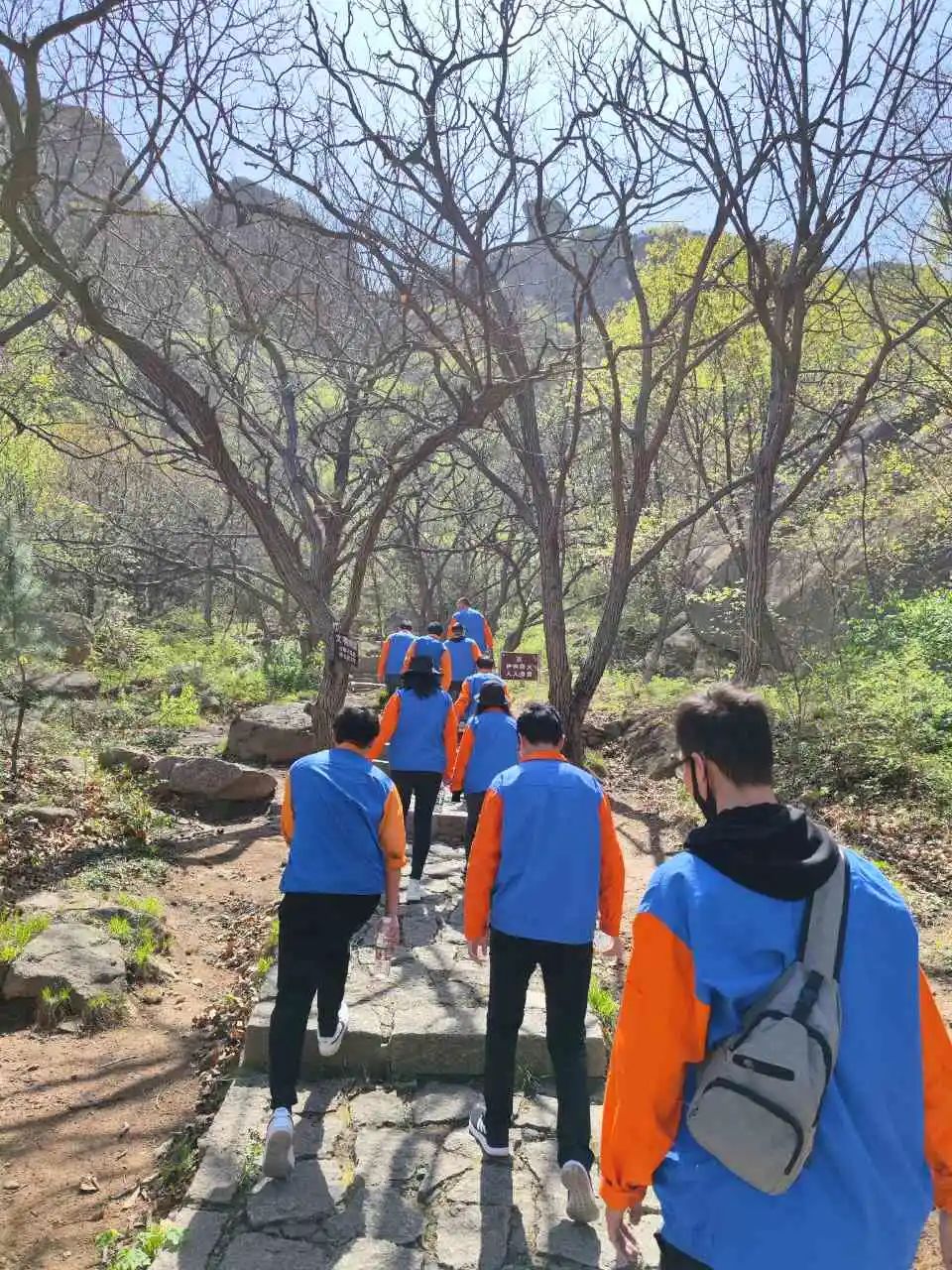 10點(diǎn)到達(dá)五蓮山風(fēng)景區(qū)西門(mén)口,大家在景區(qū)的正門(mén)臺(tái)階前留念合影,并對(duì)登山安全注意事項(xiàng)進(jìn)行了強(qiáng)調(diào)提醒。開(kāi)始爬山啦!大家個(gè)個(gè)精神抖擻、意氣風(fēng)發(fā),朝著山頂奮力前進(jìn)。盡管有個(gè)別伙伴由于身體原因使登山的腳步慢了下來(lái),但他們互相加油打氣,繼續(xù)向登頂?shù)哪繕?biāo)努力著。約1個(gè)半小時(shí)后,所有人員全部到達(dá)峰頂。山風(fēng)陣陣吹來(lái),吹干了攀登過(guò)程中留下的汗水,我們放眼望去,山中所有美景盡收眼底,漫山松翠,層林盡染,格外動(dòng)人。